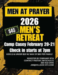 2026 Men’s Retreat February 20 – 21, 2026 7:00 pm To register, please email the church office at [email protected].